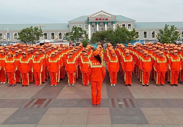 機(jī)洗(洗掃車(chē)洗掃吸一體)→機(jī)保(保潔車(chē)巡回保潔)→人沖(手持槍沖洗人行道)→人工(人工清掃保潔) -